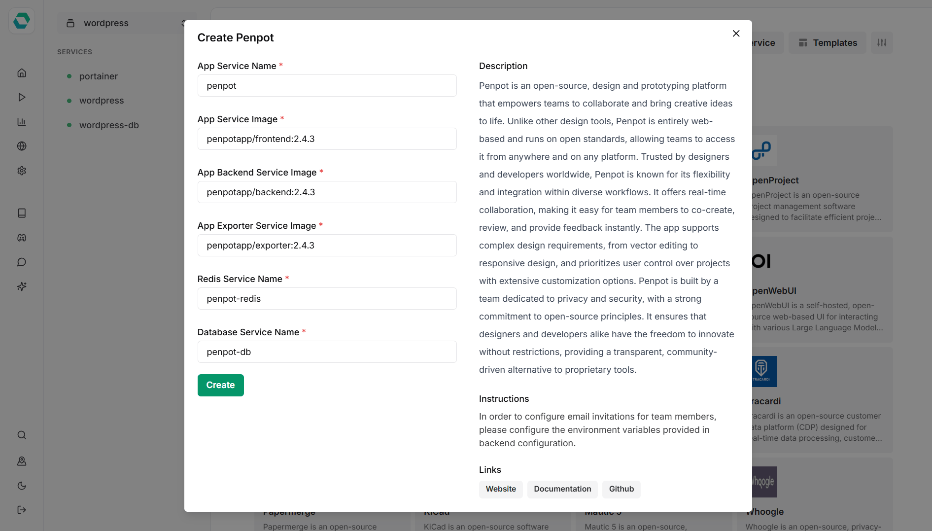 Với sự hỗ trợ của EasyPanel – một công cụ điều khiển VPS miễn phí, thân thiện với người dùng – việc cài đặt Penpot trở nên đơn giản hơn bao giờ hết. Chỉ với một vài cú nhấp chuột, bạn đã có thể triển khai Penpot mà không cần kiến thức chuyên sâu về dev-ops hay quản trị hệ thống. Không chỉ Oracle, bạn còn có thể áp dụng cách này lên các VPS phổ biến như GreenCloud hay SpeedyPage.